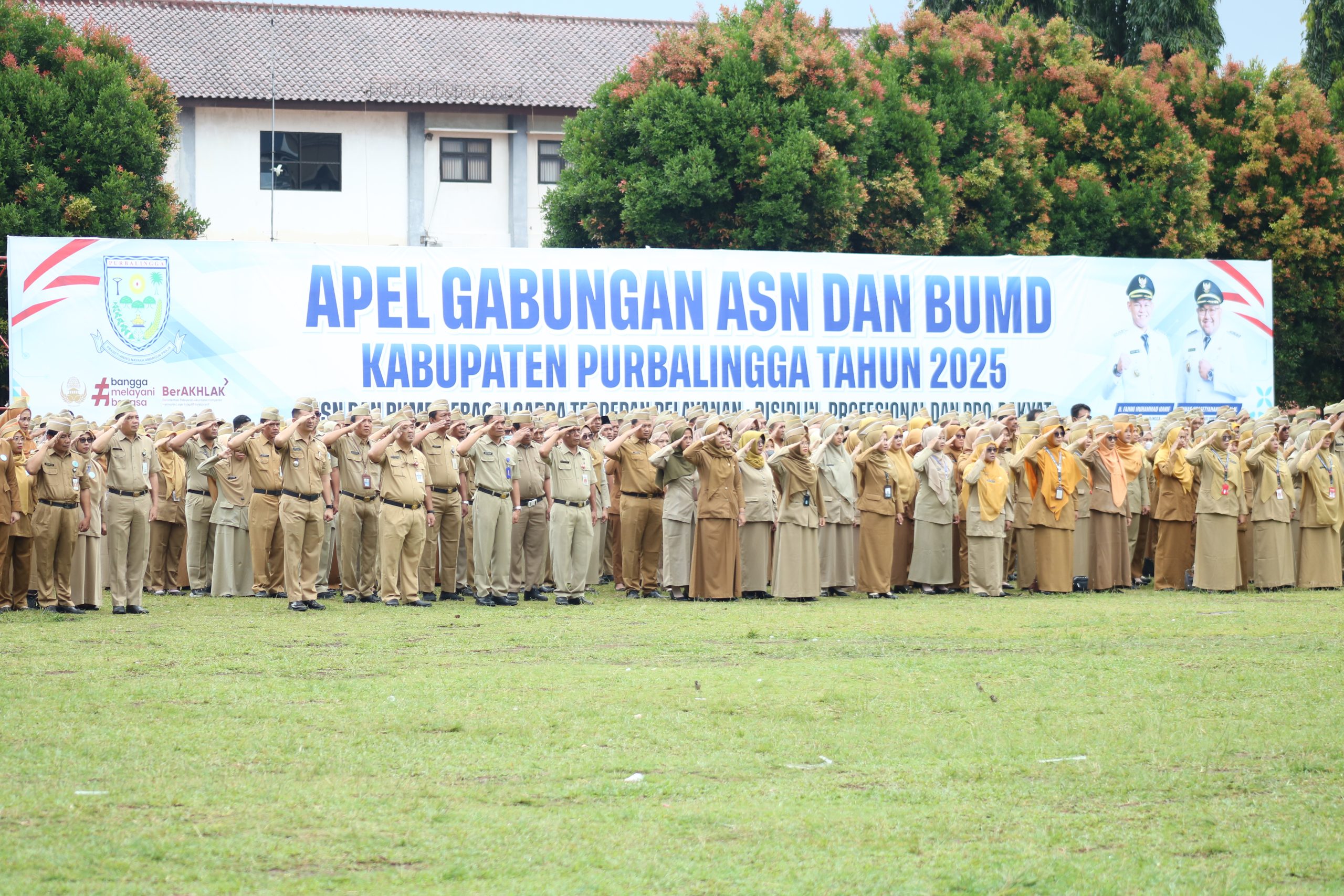 Seluruh ASN Dinkominfo hadir pada kegiatan Apel Gabungan ASN dan BUMD Kabupaten Purbalingga Tahun 2025 digelar di Alun-Alun Purbalingga.