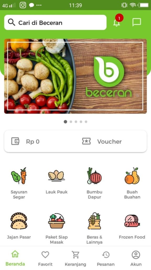 BECERAN merupakan kata yang berasal dari Bahasa Jawa yang memiliki makna barang belanjaan kebutuhan sehari-hari. Aplikasi BECERAN memfasilitasi ibu-ibu yang memiliki rutinitas keseharian belanja kebutuhan sehari-hari untuk menyiapkan makanan bagi keluarga. Melalui aplikasi ini dengan tetap aman berada di rumah sesuai anjuran dari pemerintah dalam rangka memutus rantai penyebaran Covid-19 para ibu dapat berbelanja dengan berbagai pilihan barang belanjaan dengan harga relatif sama dengan harga barang belanjaan di pasar.