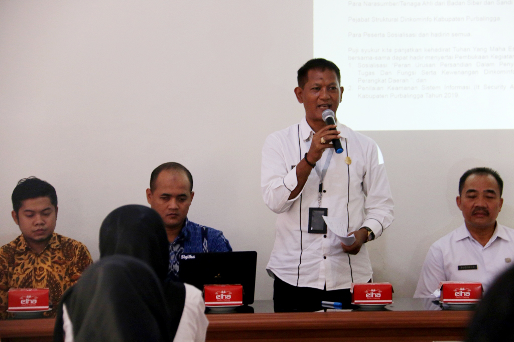 “Kita sekarang ini sudah memasuki era digital. Kita tidak bisa menolak kemajuan teknologi tersebut. Namun kemajuan teknologi informasi juga memiliki resiko. Ketika sejumlah data penting dalam bentuk elektronik, maka data tersebut rentan terhadap berbagai jenis ancaman, dibandingkan dengan data yang tersimpan secara manual.” kata Sridadi dalam acara Sosialisasi Peran Urusan Persandian dalam Penyelenggaraan E-Government, bertempat di Aula Dinkominfo Purbalingga, Rabu (10/4).