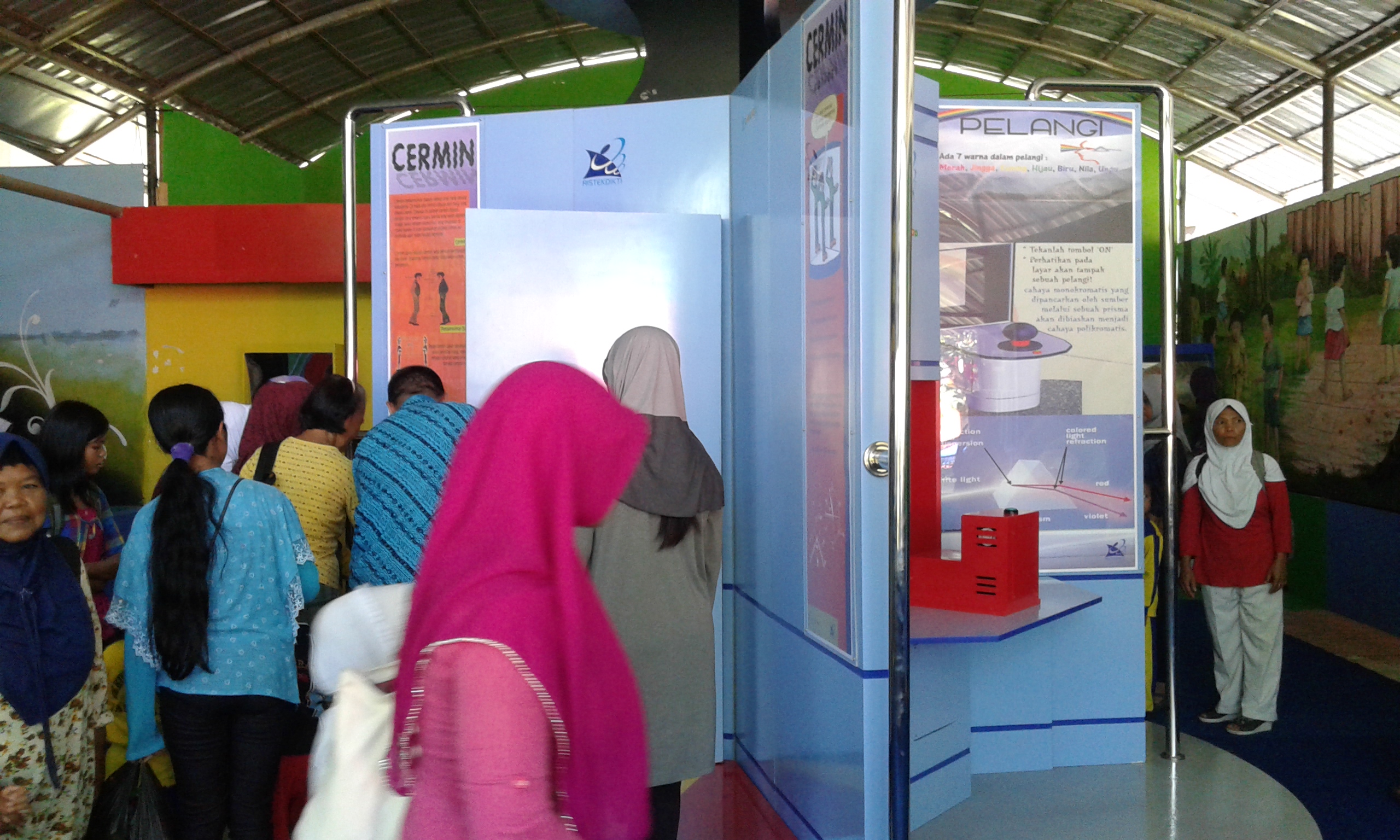 PURBALINGGA – Sekerumunan siswa-siswi SMP tampak menyimak sebuah alat peraga iptek baru di kompleks Sanggaluri (Sanggar Luru Ilmu) Park, Desa/Kecamatan Kutasari, Purbalingga. Mereka tengah mencermati proses terjadinya sebuah pelangi. Tak hanya siswa, sang gurunya pun ikut memperhatikan secara jeli. Beberapa siswa lain mengamati alat peraga cermin variasi, proses film kartun dan alat peraga lain bertema optik.