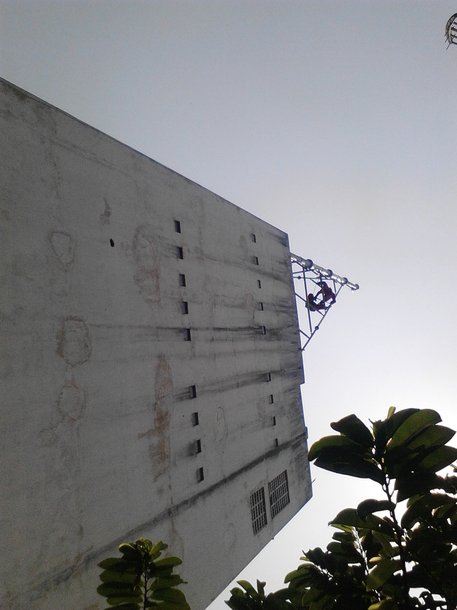Terlihat beberapa orang satpol PP juga melakukan teguran kepada dua orang pekerja untuk turun dari lantai 3 dan segera mengentikan pekerjaannya. Mendegar seruan dari Satpol PP, pekerjapun turun dan mengentikan pekerjaannya.