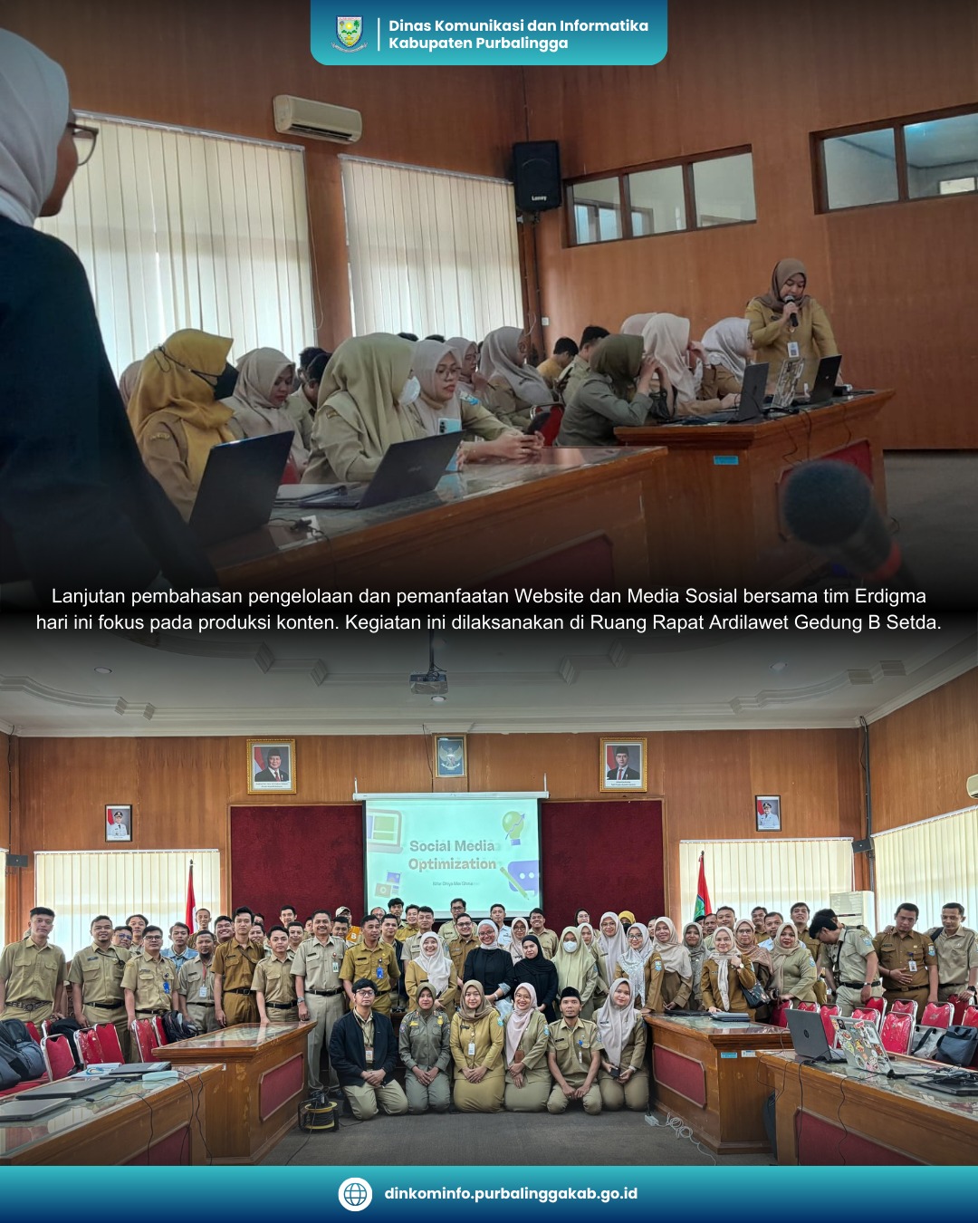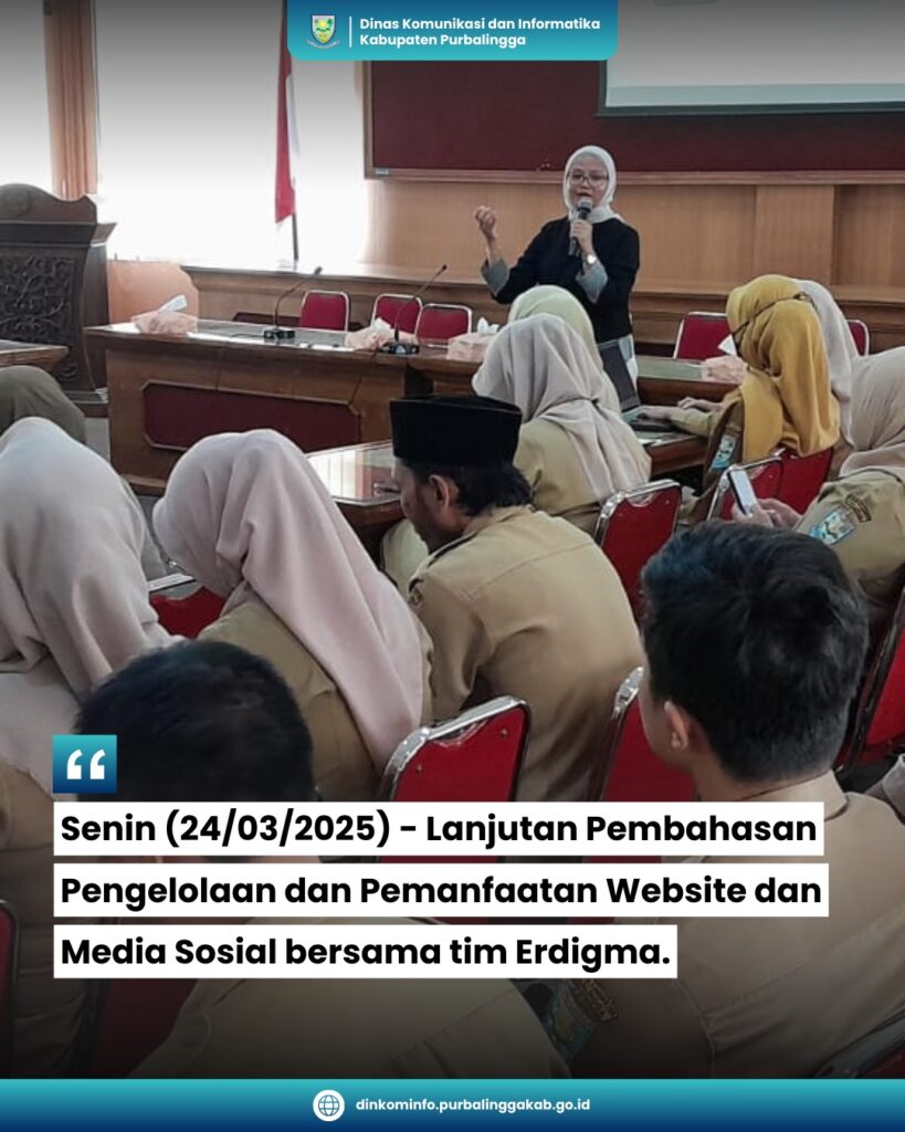 Senin (24/03/2025) – Lanjutan Pembahasan Pengelolaan dan Pemanfaatan Website dan Media Sosial yang dilaksanakan di Ruang Rapat Ardilawet Gedung B Setda.