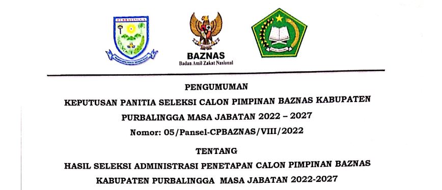Pengumuman Hasil Seleksi Administrasi Penetapan Calon Pimpinan Baznas Kabupaten Purbalingga