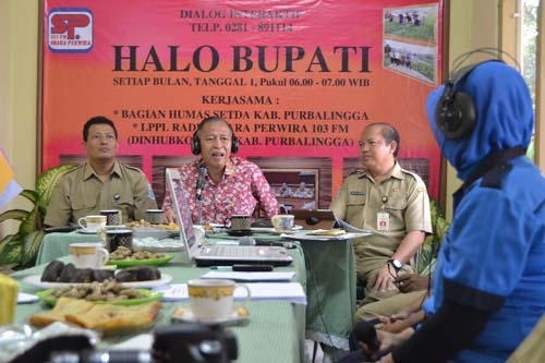 PURBALINGGA, Bupati Purbalingga Sukento Rido Marhaendrianto siap melanjutkan program Dialog Bupati yang disiarkan langsung oleh Lembaga Penyiaran Publik (LPPL) Radio Suara Perwira 103 FM Purbalingga. Program lanjutan Dialog Interaktif Halo Bupati ini bakal diselenggarakan rutin sebulan sekali oleh Bagian Humas Setda Purbalingga bekerjasama dengan Dinhubkominfo dan LPPL Radio Suara Perwira. Hal itu disampaikan Bupati saat…
