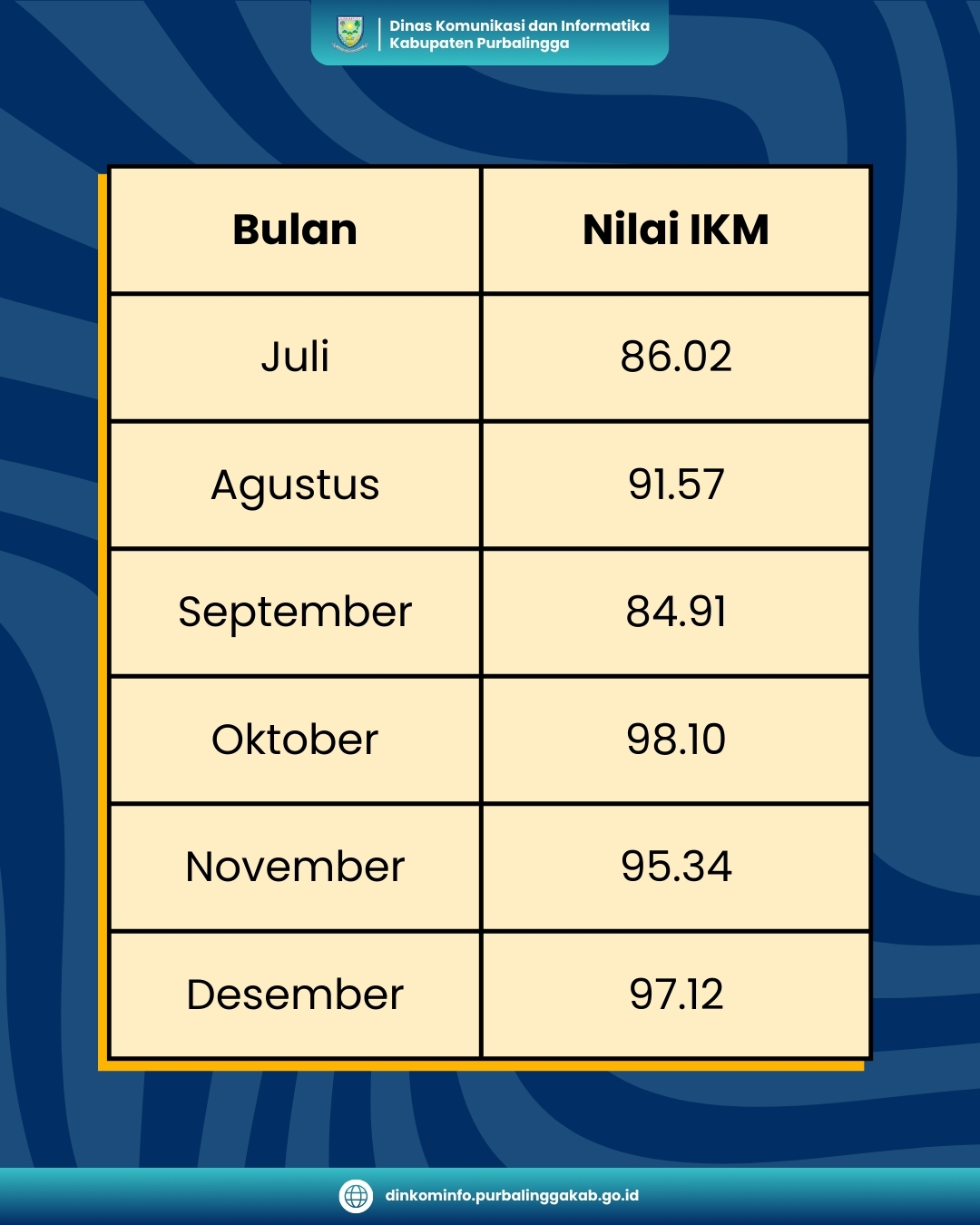 Berikut adalah Daftar Nilai SKM Tahun 2024 Dinas Komunikasi dan Informatika Kabupaten Purbalingga
