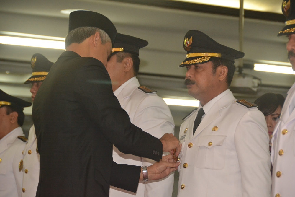 PURBALINGGA – Plt Bupati Purbalingga Budi Wibowo, Rabu (5/8) dilantik menjadi Penjabat (Pj) Bupati oleh Gubernur Jawa Tengah Ganjar Pranowo. Pelantikan dirinya dilangsungkan di Gedung Grhadhika Bhakti Praja Semarang, bersama empat penjabat lainnya yakni Pj Walikota Semarang Tavip Supriyanto, Pj Bupati Rembang Suko Mardiono,Pj Bupati Kebumen Muhammad Arief Irwanto dan Pj Walikota Surakarta Budi Suharto.