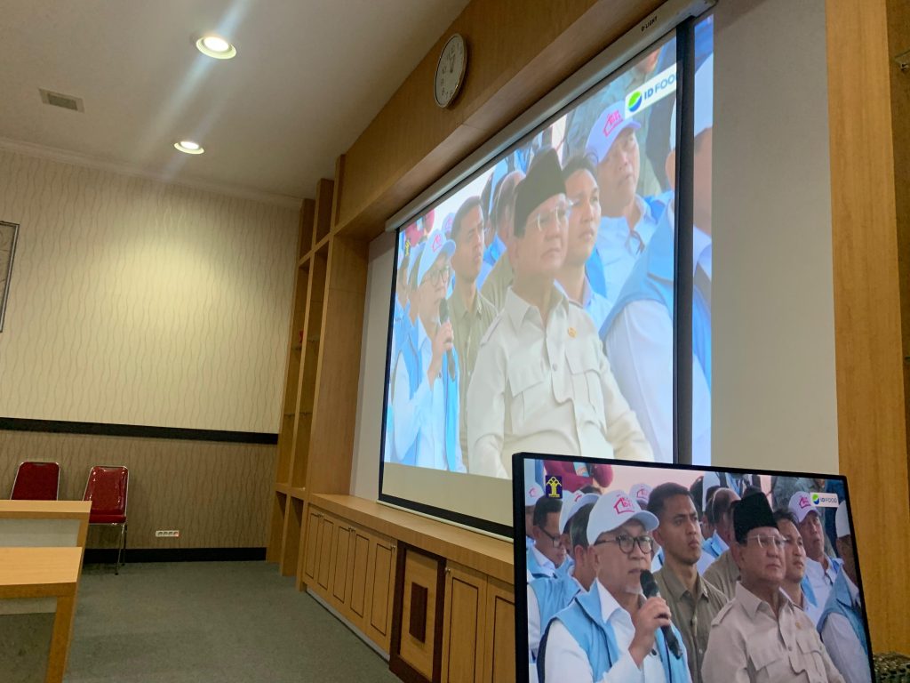 Kegiatan Fasilitasi Zoom Meeting pada acara Peluncuran Kelembagaan 80.000 Koperasi Desa/Kelurahan Merah Putih di ruang rapat Bupati Daerah Kabupaten Purbalingga. Senin (21/07/2025).