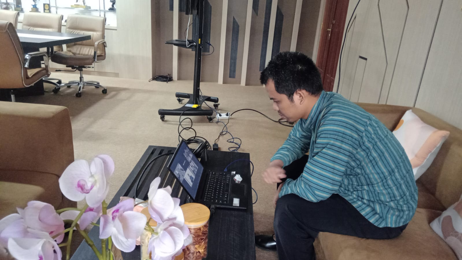 Kegiatan Fasilitasi Zoom Meeting pada acara “SOSIALISASI PEMBANGUNAN SATUAN PELAYANAN PEMBANGUNAN GIZI KURBUK SPPG KURTUP” yang dilaksanakan di ruang kerja Sekretaris Daerah Kabupaten Purbalingga. Jum’at (18/07/2025).