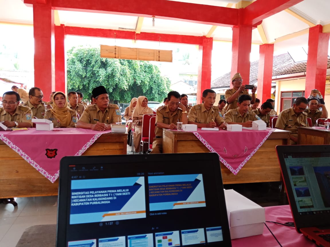 PURBALINGGA, INFO –  Dinas Komunikasi dan Informatika Kabupaten Purbalingga mensosialisasikan rintisan Desa Berbasis Teknologi Informasi, Selasa (11/6). Acara yang digelar di Aula Aboebakar Kecamatan Kaligondang itu diikuti oleh Kepala Desa dan Sekretaris Desa se wilayah Kecamatan Kaligondang. Selain itu acara juga dihadiri Pendamping Desa dan Pendamping Lokal Desa untuk wilayah Kecamatan Kaligondang.