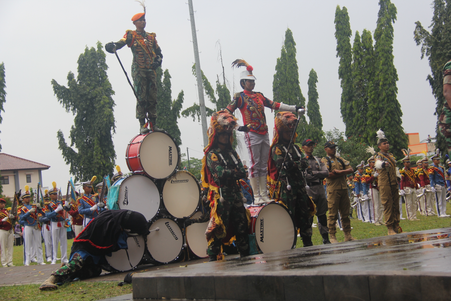 “Selain menjadi hiburan bagi masyarakat, drumband ini bisa menjadi semangat agar generasi muda selalu berprestasi,” ujar Sukento pada saat menyaksikan di panggung kehormatan bersama Forum Koordinasi Pimpinan Daerah. Ikut Juga cucu Bupati menyaksikan atraksi tersebut