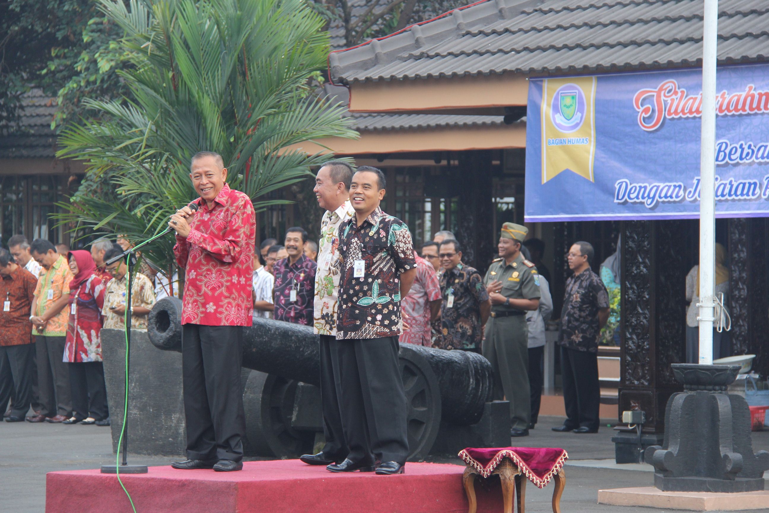 “Saya dan Pak Tasdi mohon maaf jika selama ini ada kesalahan. Mudah-mudahan kita bisa bertemu lagi dalam suasana yang lebih dan lebih menyenangkan lagi,” ujar Bupati Kento diiringi anggukan Wakil Bupati Tasdi dan Sekda Imam Subijakto yang berdiri di belakangnya, dalam panggung yang sama.
