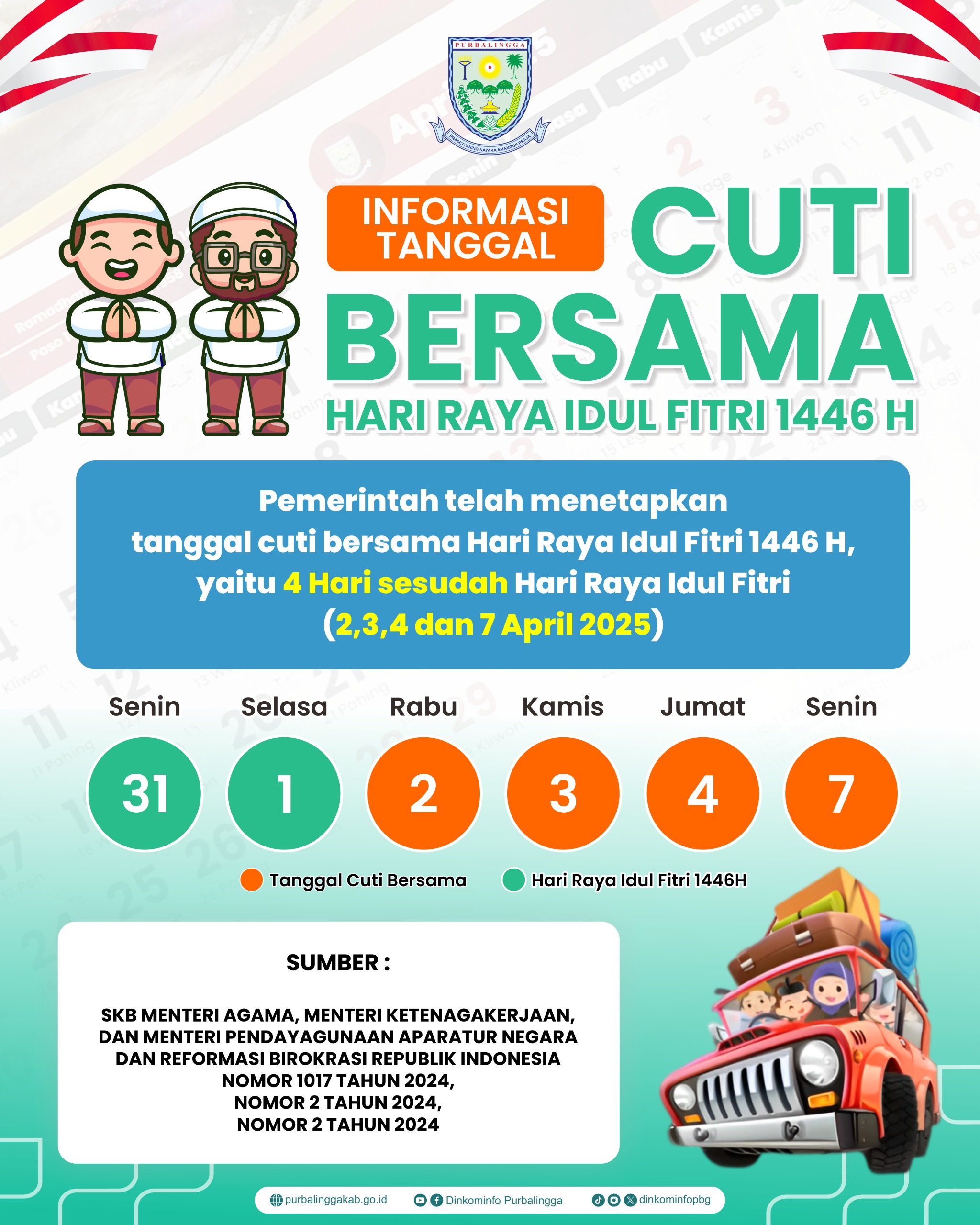 Jadwal Cuti Bersama Hari Raya Idul Fitri 1446 H/2025 M Pemkab Purbalingga