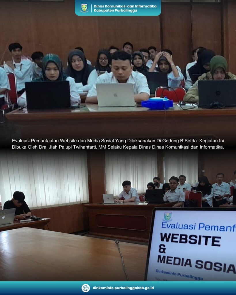BERITADINKOMINFOKegiatan Evaluasi Pemanfaatan Website dan Media Sosial admin11 months ago01 mins Rabu (19/03/2025) Kegiatan Evaluasi Pemanfaatan Website dan Media Sosial yang dilaksanakan di Ruang Rapat Ardilawet Gedung B Setda. Post navigation Previous: Kegiatan Lanjutan Dari Pembinaan Statistik Sektoral Bersama OPD Kabupaten PurbalinggaNext: Dinkominfo Purbalingga Mengikuti FKP Standar Pelayanan Dinarspus Purbalingga Leave a Reply Cancel replyYour email address will not be published. Required fields are marked *Comment * Name * Email * Website Save my name, email, and website in this browser for the next time I comment. Δ