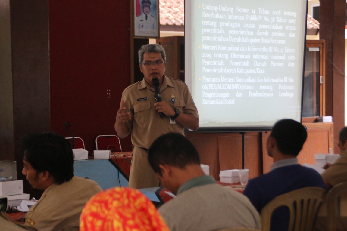 Hal itu disampaikan oleh Kabid Informasi dan Komunikasi Publik (IKP) pada Dinas Komunikasi dan Informatika (Dinkominfo) Purbalingga Istriyati saat melakukan sosialisasi Kelompok Informasi Masyarakat di Pendopo Perwira Kecamatan Kalimanah, Selasa (6/11). Sosialisasi diikuti oleh 50 orang yang terdiri dari perangkat desa atau kelurahan serta pegiat informasi.