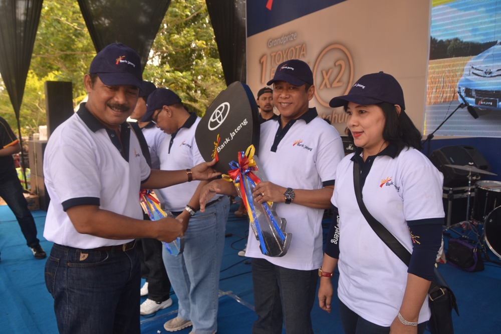 PURBALINGGA – Pelaksanaan penarikan undian Tabungan Bima Periode I Bank Jateng wilayah koordinator Purwokerto yang dipusatkan di Alun Alun Purbalingga, Minggu (11/10) berlangsung meriah. Undian Tabungan Bima dari empat Bank Jateng di wilayah eks Karesidenan Banyumas meliputi Kabupaten Banyumas, Purbalingga, Banjarnegara dan Cilacap, diawali jalan sehat yang diikuti seribuan lebih nasabah dan masyarakat Purbalingga.