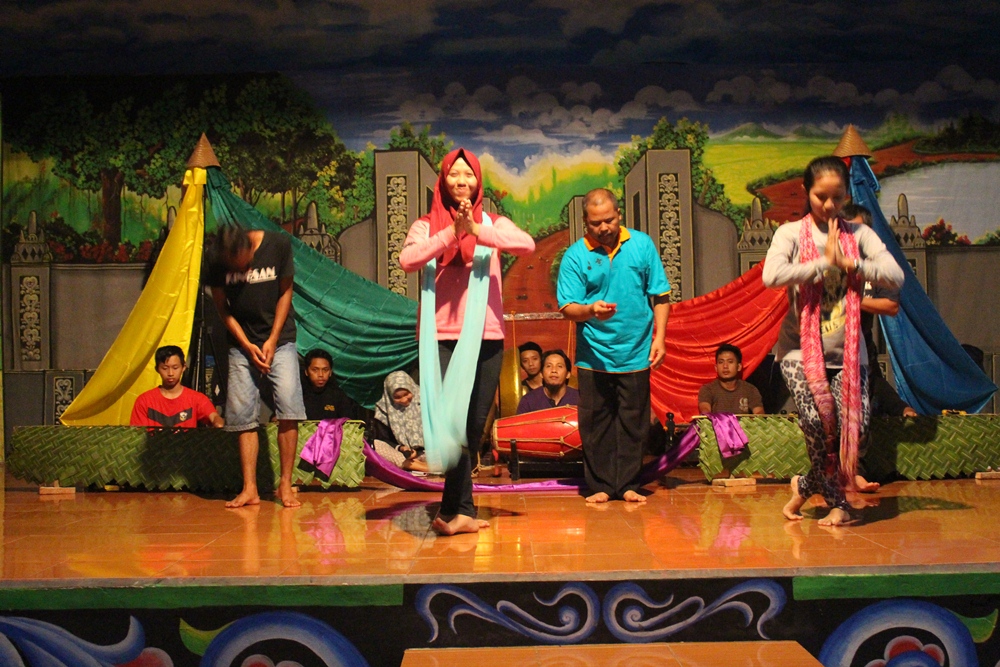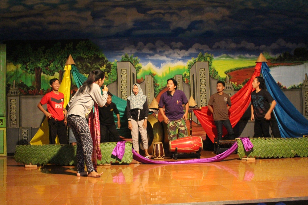 Ket foto : Forum Komunikasi Media Tradisional (FK Metra) binaan Dinas Komunikasi dan Informatika (Dinkominfo) Purbalingga menggelar latihan pementasan dengan lakon ‘Molek Ngglatek ketemu Dewek’ di Gelanggang Olah Raga (GOR) Mahesa Jenar, Purbalingga. Latihan itu untuk menghadapi babak penyisihan dan seleksi FK Metra Tingkat Provinsi Jateng di Kabupaten Brebes, Jum’at (19/5) mendatang. (yit)