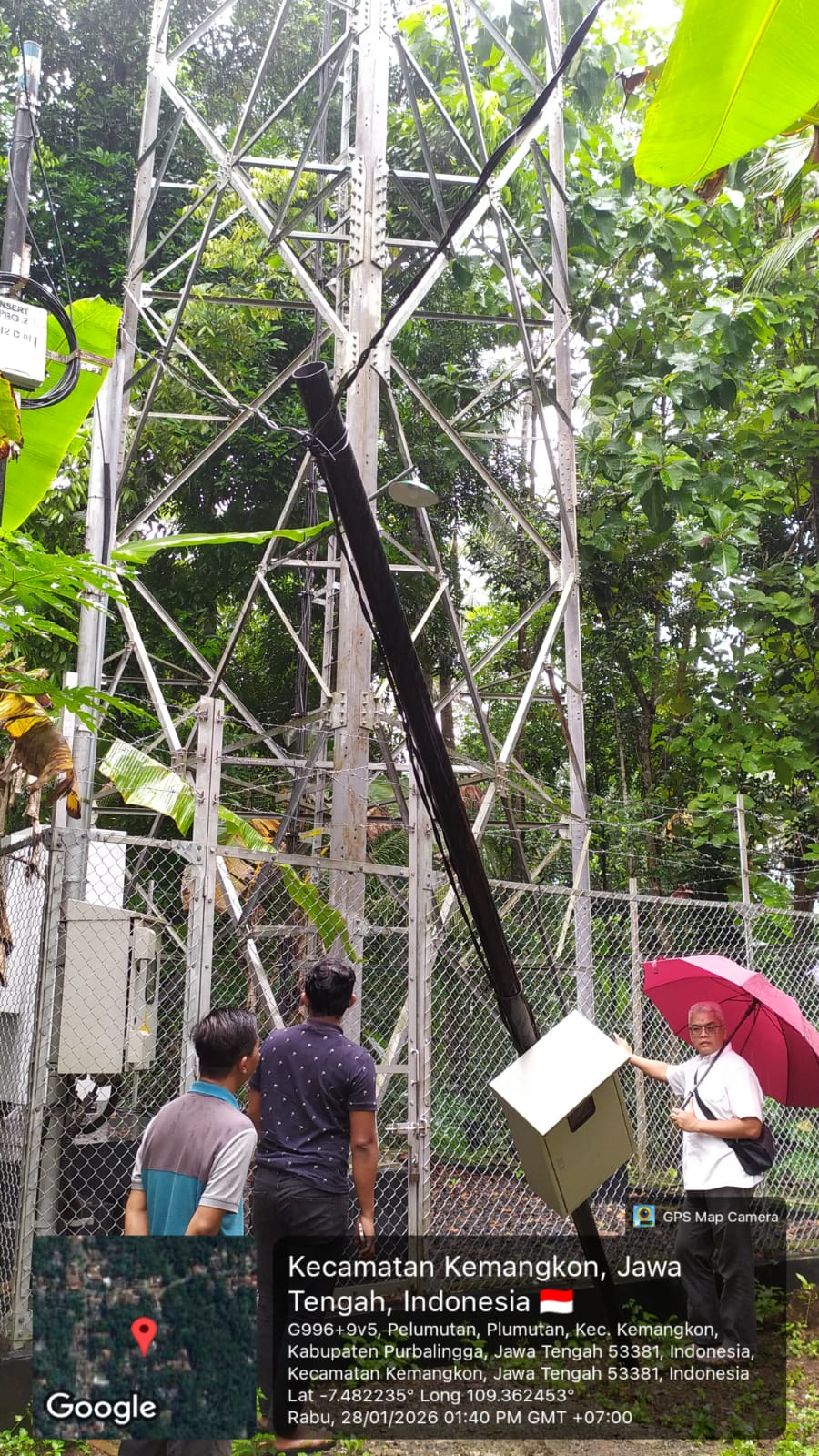 Kepala Bidang Infrastruktur, Teknologi Informasi dan Komunikasi, Statistik dan Persandian (ITIKSP) Dinkominfo Purbalingga, Sapto Suhardiyo, S.STP., S.T., memimpin langsung kegiatan monitoring menara telekomunikasi milik PT. STP yang berlokasi di Desa Pelumutan, Kecamatan Kemangkon. Didampingi oleh Bangun Eni Mulyanti dan Edy Sumartono, S.H., tim teknis melakukan pemeriksaan menyeluruh terhadap aset infrastruktur tersebut, Rabu (28/1).