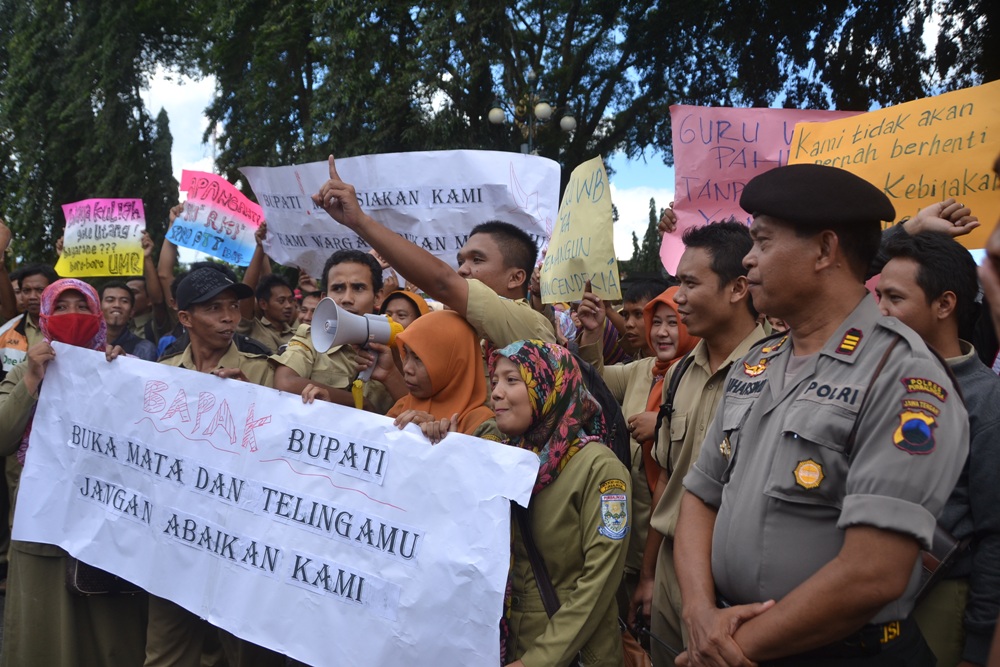 “Saya juga prihatin dengan nasib mereka. Kami usahakan dan segera bergerak, utamanya dalam hal peningkatan kesejahteraan. Tapi kalau untuk menjadikan mereka CPNS itu tidak mungkin. Karena aturan dari pusat tidak mungkin saya langgar,” katanya didepan 10 perwakilan GTT dan PTT yang diketuai Abas Rosadi.