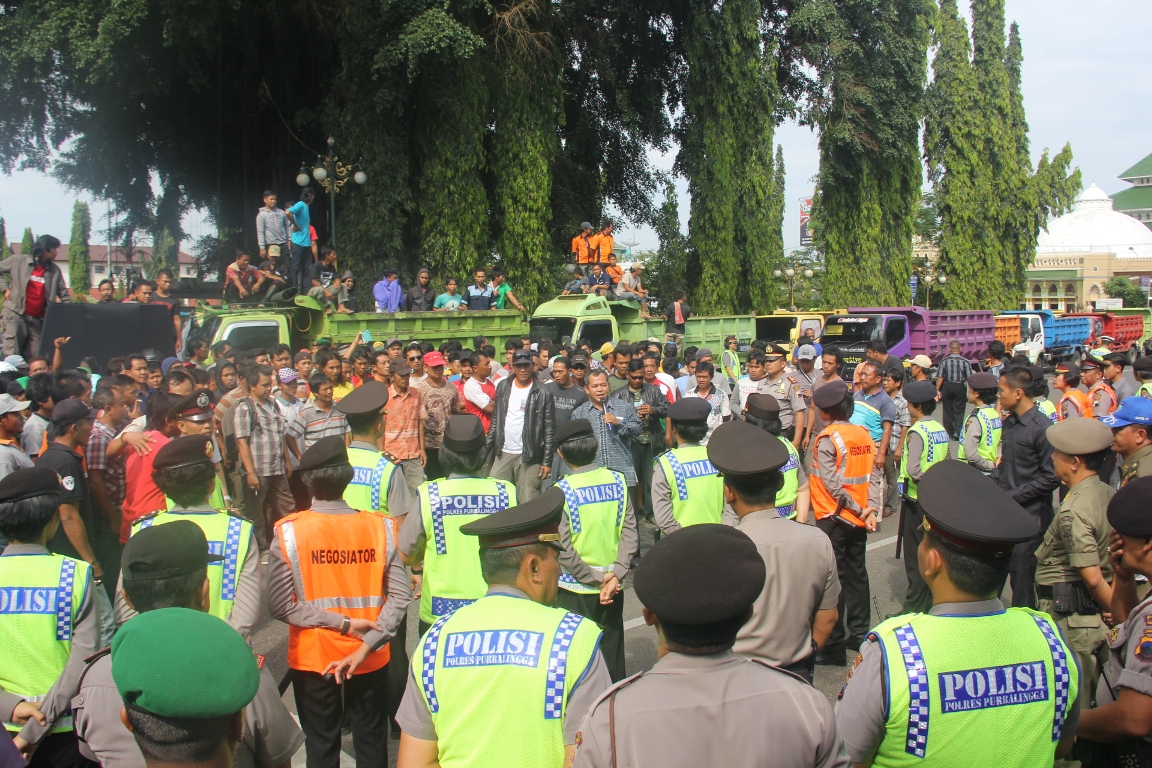 PURBALINGGA , Pemkab Purbalingga memediasi para pengusaha tambang galian C dengan menerima perwakilan pendemo di Ruang Rapat Bupati oleh Asisten I dan Asisten II beserta pejabat Pemkab terkait. Orasi dilakukan di depan Pendopo terkait dengan penutupan tambang oleh Dinas ESDM Provinsi Jateng dan Polda Jateng, Kamis (23/4).