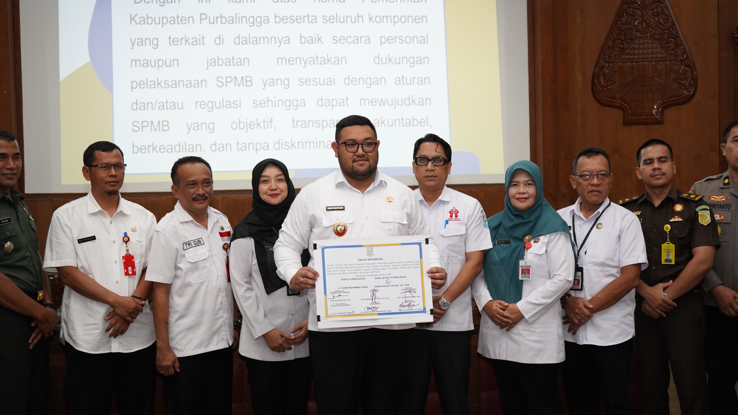 Kepala Dinas Komunikasi dan Informatika, Dra. Jiah Palupi Twihantarti, M.M. menandatangani pakta integritas terkait dengan SPMB (Forum Penerimaan Murid Baru) pada Hari Rabu 30 April di Operation Room, Pendopo Dipokusumo Purbalingga.