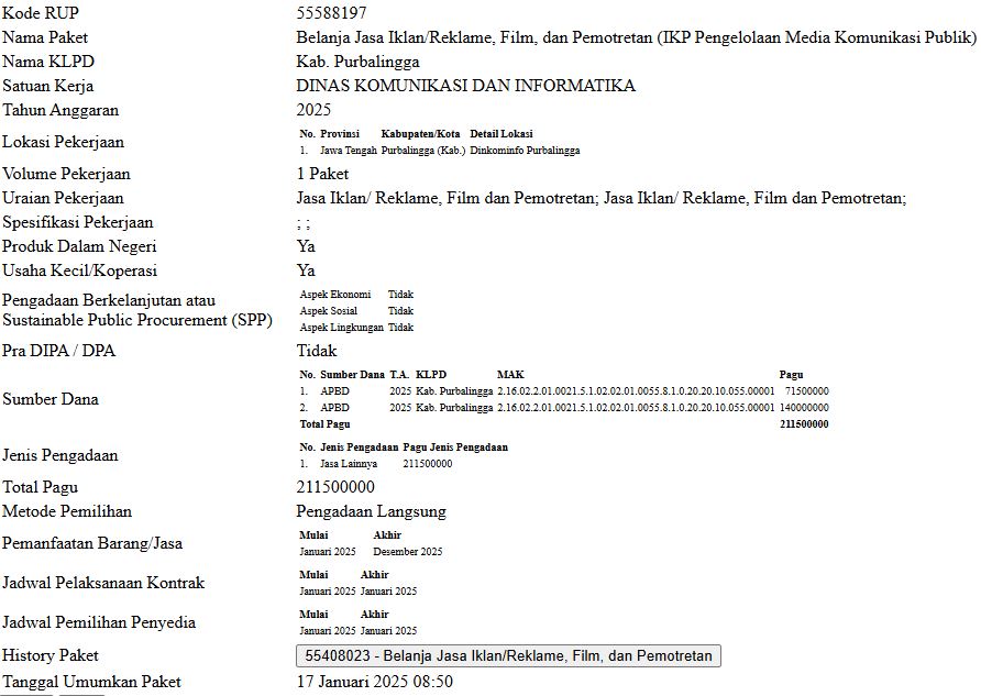 Dokumen Lainnya: https://dinkominfo-test.purbalinggakab.go.id/wp-content/uploads/2025/02/Surat-Keterangan-Dokumen-Pengadaan-Barjas.pdf