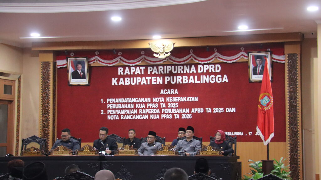 Kegiatan Rapat Paripurna DPRD Kabupaten Purbalingga dihadiri oleh Sadono, S.Sos., M.Si “Plt. Kepala Dinkominfo Kabupaten Purbalingga” dengan acara (1) Penandatanganan Nota Kesepakatan Perubahan KUA PPAS TA 2025, (2) Penyampaian Raperda Perubahan APBD TA 2025 dan Nota Rancangan KUA PPAS TA 2026. Kamis (17/07/2025).