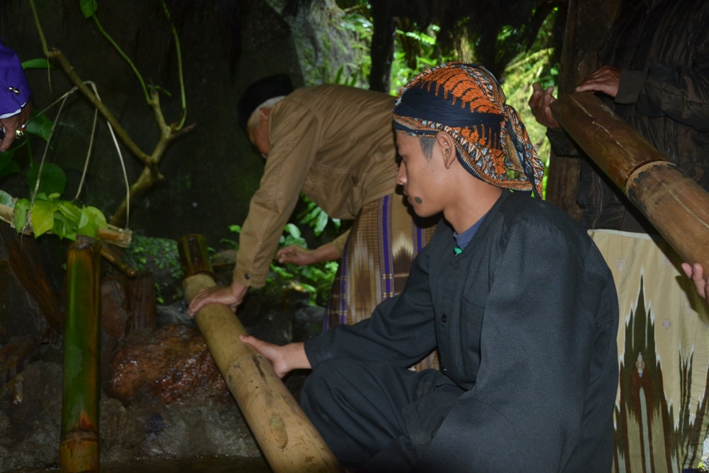 Salah seorang yang menjadi pimpinan rombongan tampak meminta izin kepada sesepuh masyarakat agar mereka bisa mengambil air dari Tuk Si Kopyah demi kesejahteraan petani.