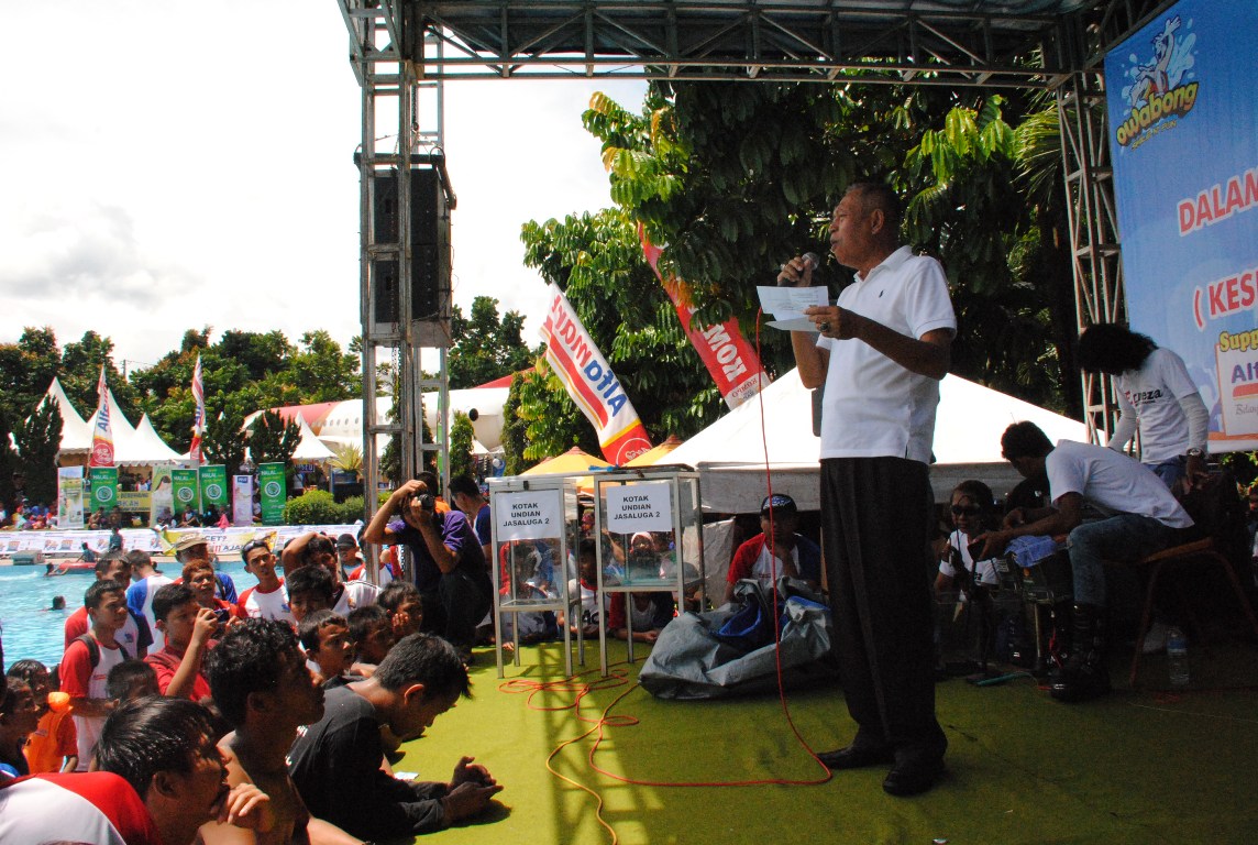 “Sebanyak tujuh ribu peserta yang mengikuti jalan santai keluarga/Jasaluga. Jalan sehat menempuh rute sejauh 4,5 kilometer start dan finish dari Owabong.Hadiah menarik yang disediakan panitia berupa satu mobil Suzuki Karimun Wagon, dua sepeda motor Honda dan dua sepeda gunung serta hadiah hiburan menarik lainnnya,”terang Humas PD Owabong Budi Anggoro usai acara Pelepasan Jalan Santai Keluarga (Jasaluga) di halaman parkir Owabong, Minggu (12/4).