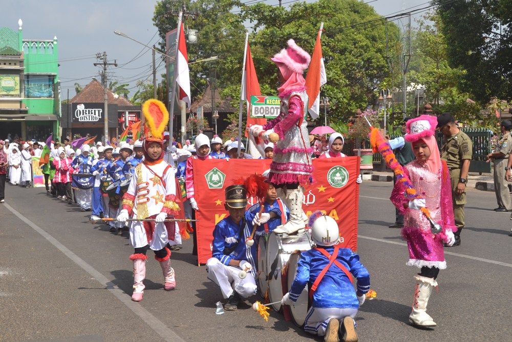 PURBALINGGA  – Menyambut Tahun Baru Hijriyah, Ribuan santri PAUD, Madrasah Diniyah, Madrasah Ibtidaiyyah, dan TPQ di kabupaten Purbalingga  mengadakan pawai taaruf. Dalam pawai tersebut ditampilkan berbagai simbol Islami, seni islami dan kreasi drumband yang dilakukan dengan mengelilingi kota Perwira Purbalingga.