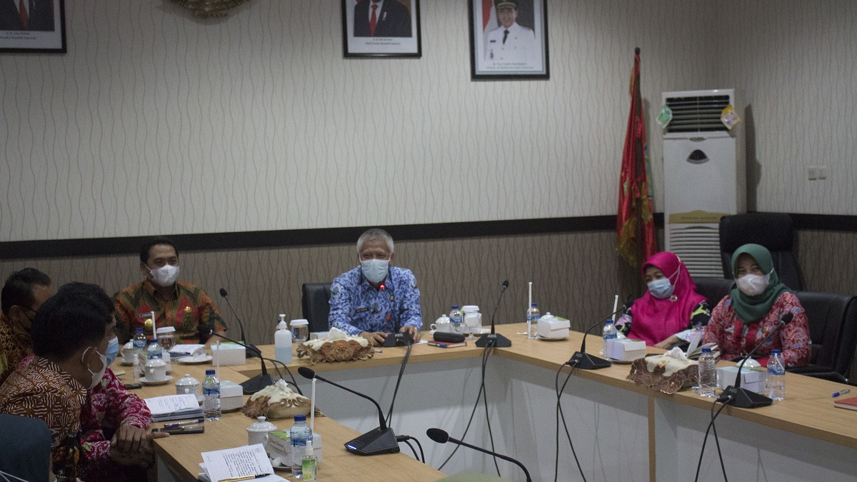 PURBALINGGA – Wakil Bupati Jombang Sumambrah, SP, MAP dan Ketua TP PKK Wiwin Isnawati Sumrambah bersama pejabat Pemkab Jombang, Jawa Timur melakukan study informasi terkait program kerjasama Tuka Tuku dengan Bukalapak di kabupaten Purbalingga, Kamis (17/6). Rombongan Wabup Jombang diterima oleh Asisten Ekonomi dan Pembangunan Sekda Purbalingga Agus Winarno di Ruang Rapat Bupati Gedung A Setda Purbalingga. Study Informasi ke Purbalingga juga dihadiri Tim Bukalapak secara virtual. “Hari ini kami ingin banyak belajar bagaimana efektivitas kerjasama Tuka Tuku Purbalingga dengan PT Bukalapak yang sudah berjalan dalam rangka meningkatkan daya saing UMKM kami di kabupaten Jombang,” ujar Wakil Bupati Jombang, Sumambrah.
