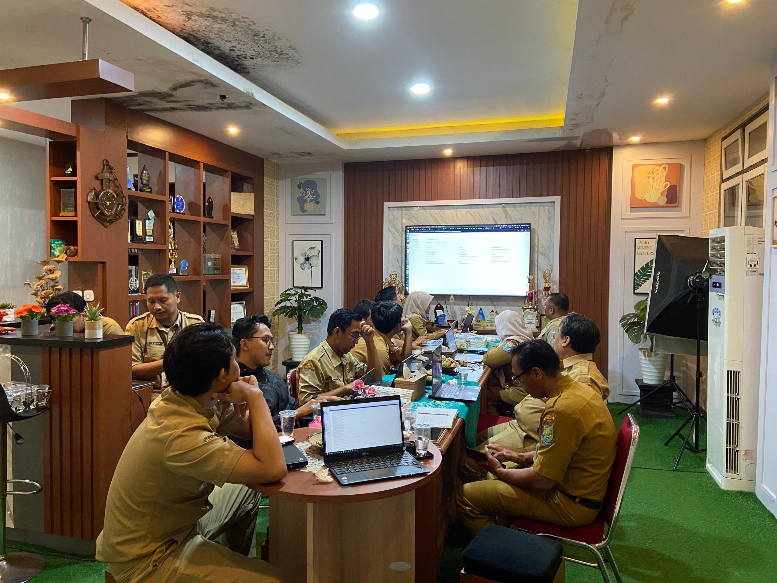 Senin (02/06/2025), Dinas Komunikasi dan Informatika (Dinkominfo) Kabupaten Purbalingga mengadakan Reviu Progres Aplikasi E-Cuti, Kepenak Ngodene dan Spheres di Ruang Podcast Dinas Komunikasi dan Informatika Kabupaten Purbalingga.