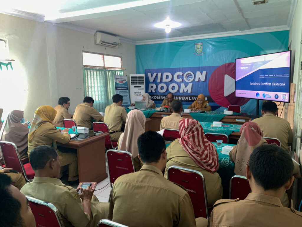PURBALINGGA, INFO – Dalam rangka mewujudkan tata kelola sistem pemerintahanan berbasis teknologi informasi dan komunikasi secara elektronik (E-government), Dinas Komunikasi dan Informatika (Dinkominfo) Kabupaten Purbalingga menggelar diseminasi berupa sosialisasi penerapan Tanda Tangan Elektronik (TTE). Kegiatan yang diikuti oleh seluruh pejabat struktural, fungsional, serta staf tersebut berlangsung pada hari Senin (13/3) bertempat di aula Dinkominfo.